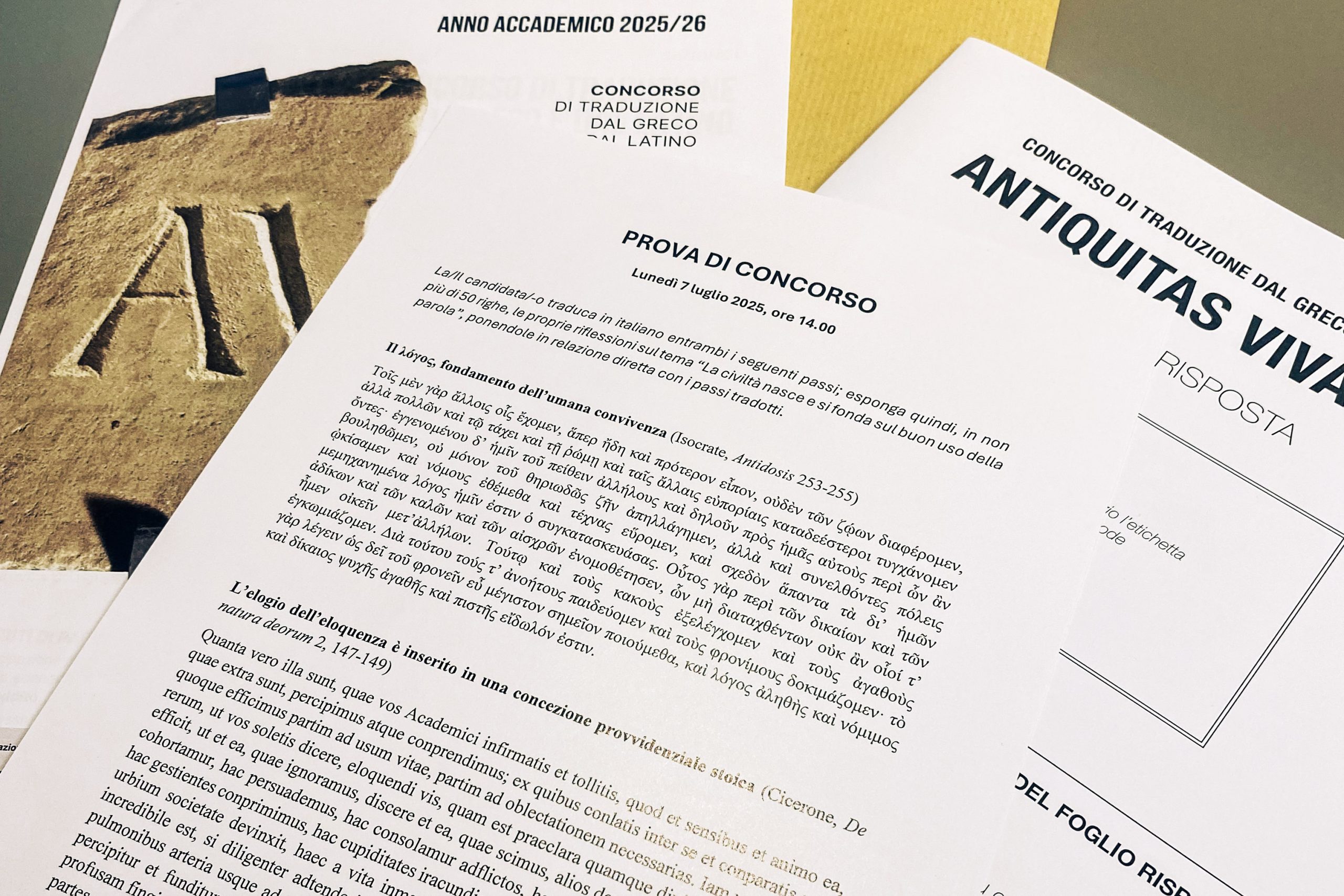 Si comunica che il giorno 7 luglio 2025, a partire dalle ore 14.00, si è regolarmente svolta la prova scritta del Concorso Antiquitas viva.